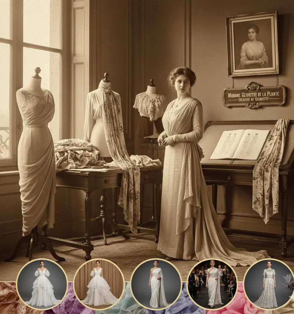 She introduced this fabric as a more durable, textured, and easily draping alternative to chiffon.
