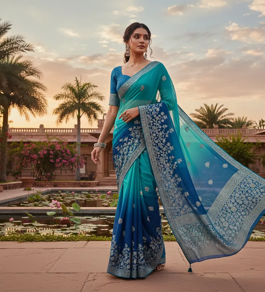 Smooth, slightly shiny blend of satin & georgette—ideal for premium sarees.