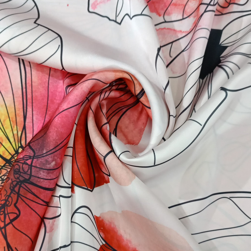 Elevate your next creation with Bloosom Red Flowers Print on Korean Satin — a sumptuous, eye-catching textile that exudes elegance and charm. Featuring a vivid red floral motif on a sleek, smooth satin base, this fabric brings rich color and refined sheen to your designs. Crafted for designers, fashion enthusiasts, and boutique labels, this printed Korean satin adapts beautifully to gowns, evening wear, skirts, and custom dresses. The floral pattern infuses romance and drama, making it ideal for standout statement pieces.