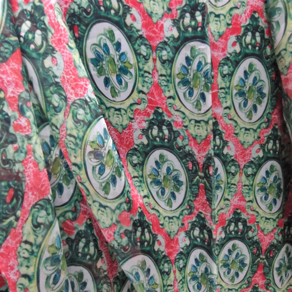 Elevate your fashion creations with the Pink Base Mirror Print on Flat Chiffon 3362 from Tessuti. This fabric combines the soft, flowing texture of chiffon with a dazzling mirror print, creating a perfect balance of elegance and modern flair. Its vibrant pink base adds a cheerful, feminine touch, while the mirror accents bring subtle shimmer that catches the light beautifully. Ideal for designers and fashion enthusiasts alike, this chiffon is lightweight, breathable, and easy to drape, making it perfect for creating flowing dresses, stylish tops, chic skirts, or delicate scarves. Its versatile nature allows it to be used for both casual wear and statement evening pieces. Whether you're crafting contemporary ethnic outfits or sophisticated western styles, this fabric ensures your designs stand out with sophistication and charm.